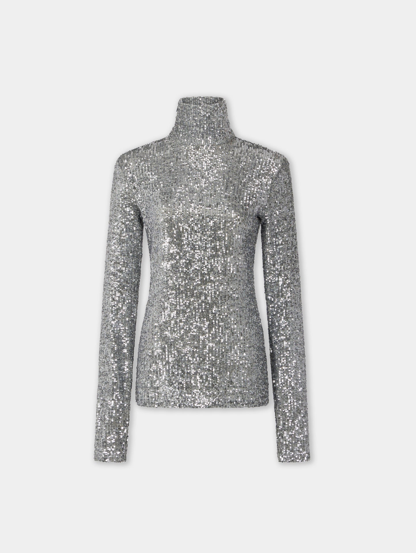 Long-sleeve turtleneck top in jersey adorned with sequins.