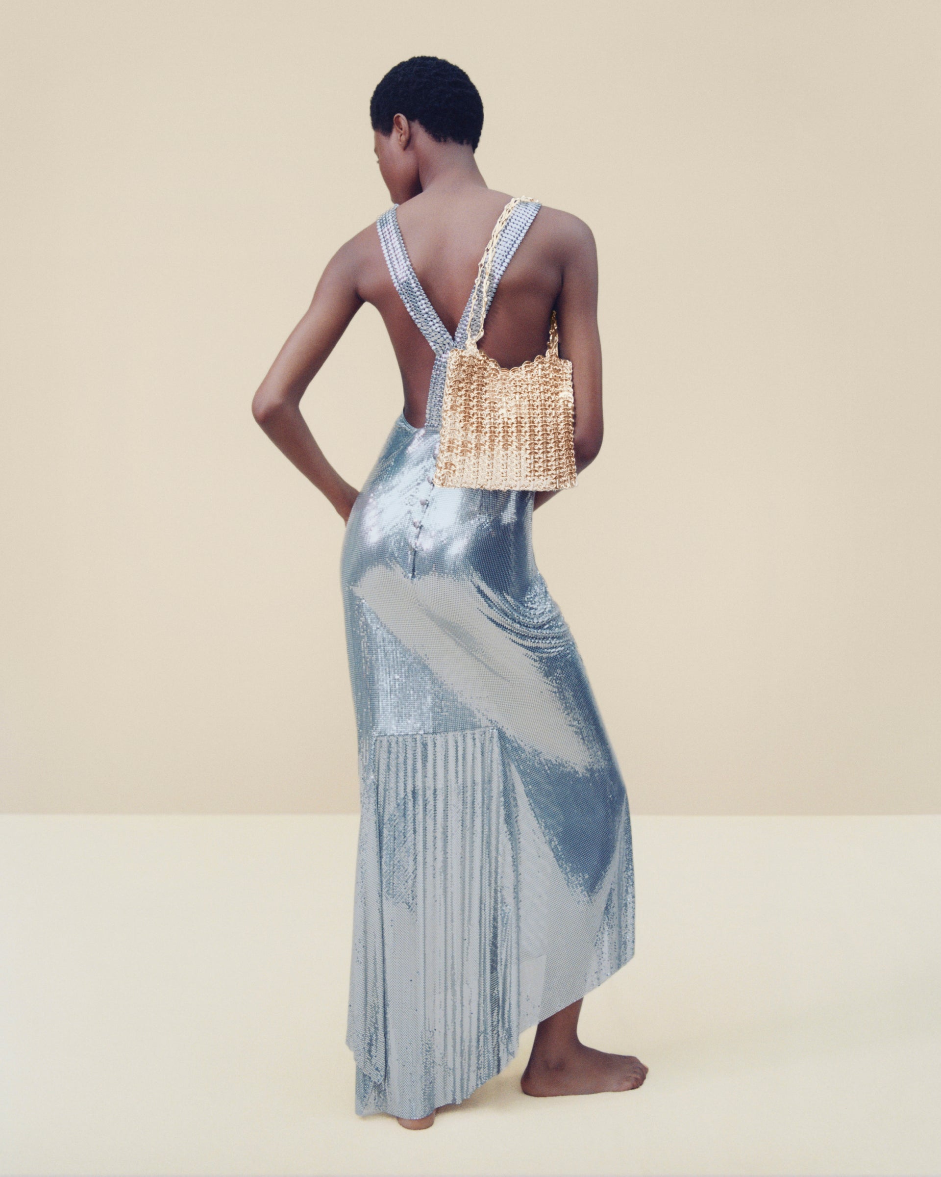 With a simple clamp, Paco Rabanne gave life to this daring bag that immediately shook up traditional craftsmanship and has become emblematic of the brand’s experimental work. Recently reedited, the original design has undergone a noticeable transformation: the heavy steel has been replaced by a lighter aluminium embellished with lustrous golden and silver finishes.