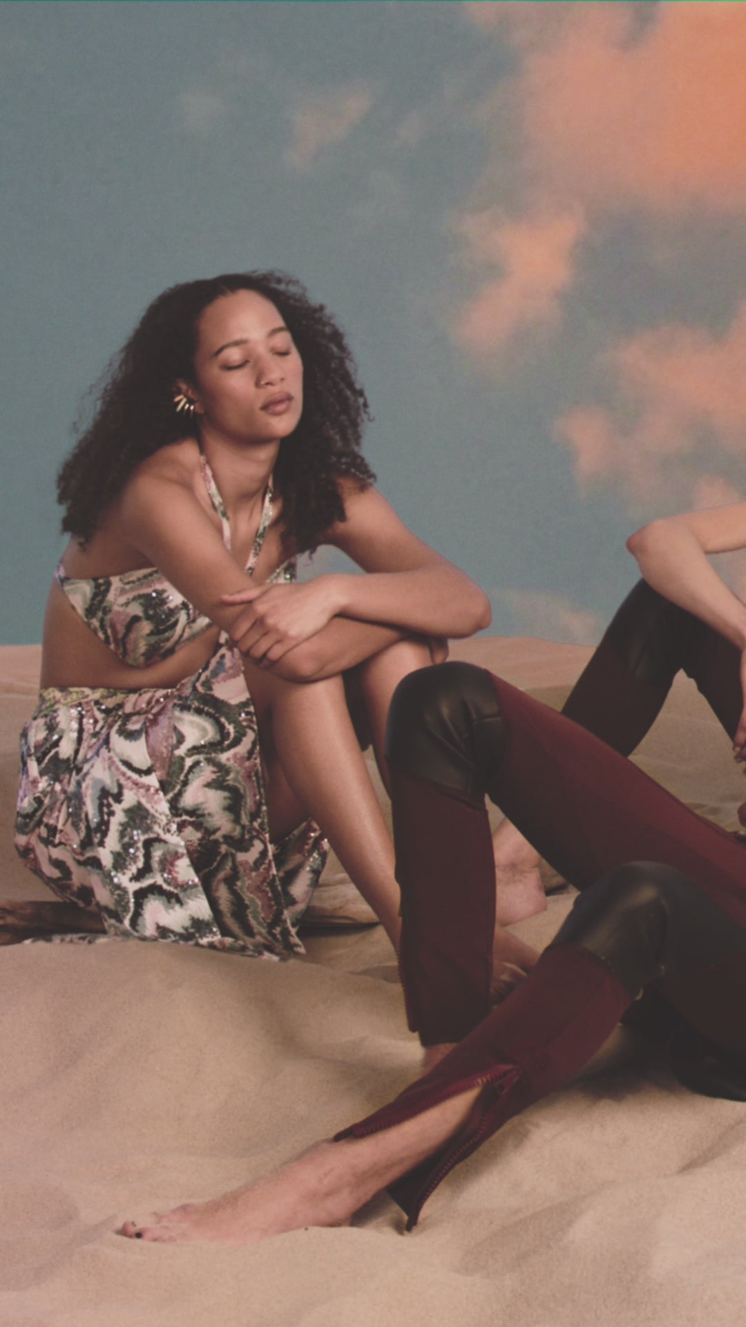 Midi Skirt with Multicolor Floral-Shaped Sequin Embroidery