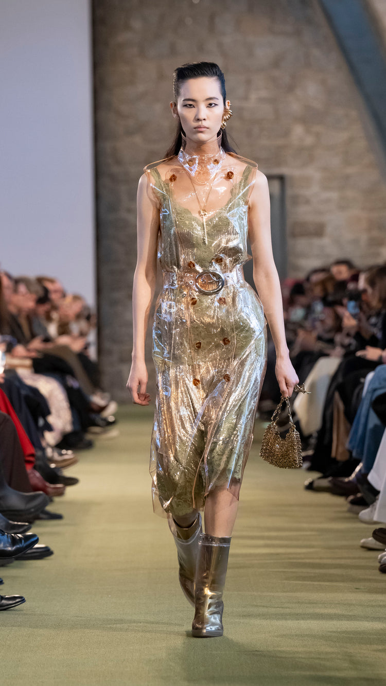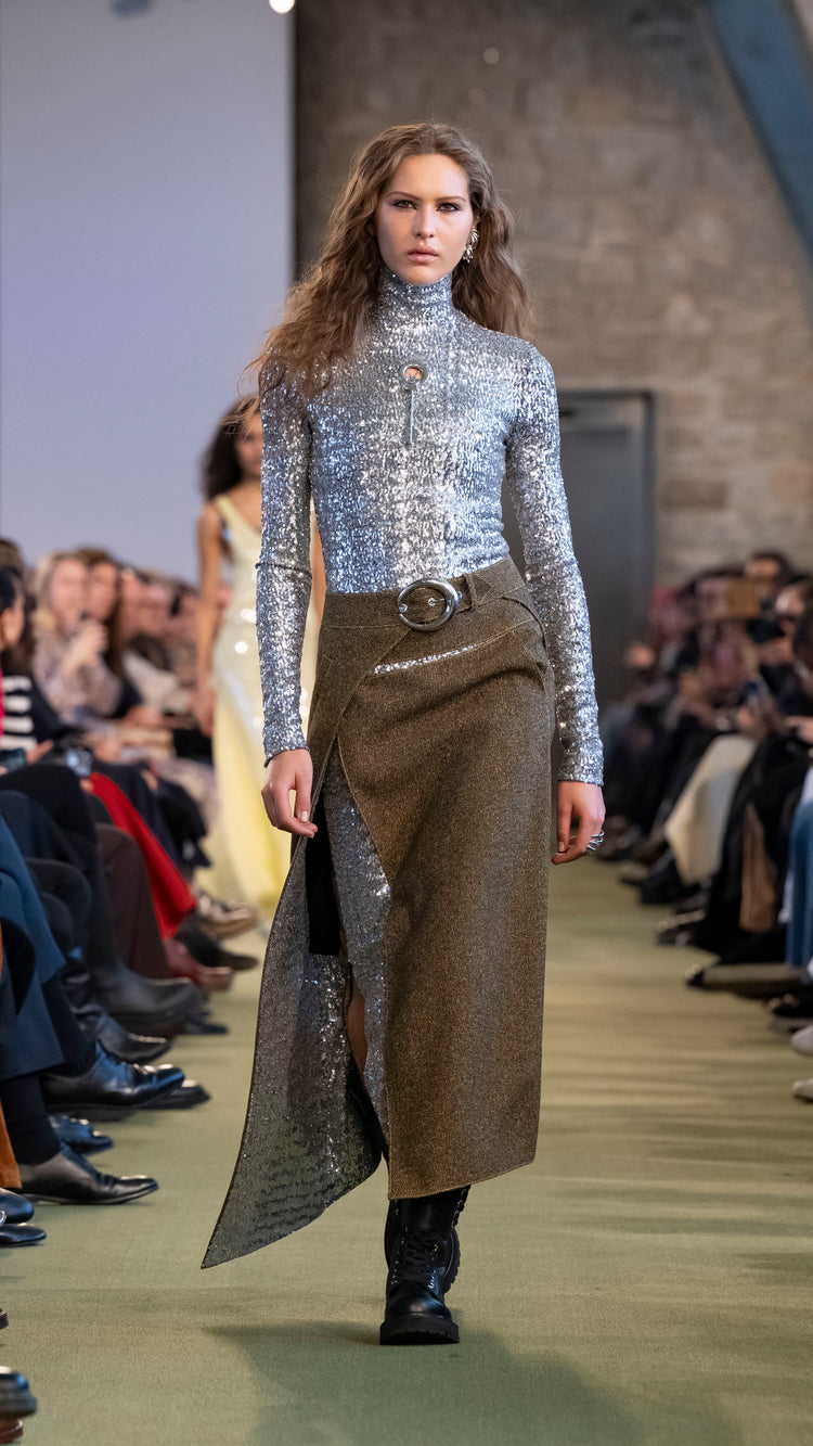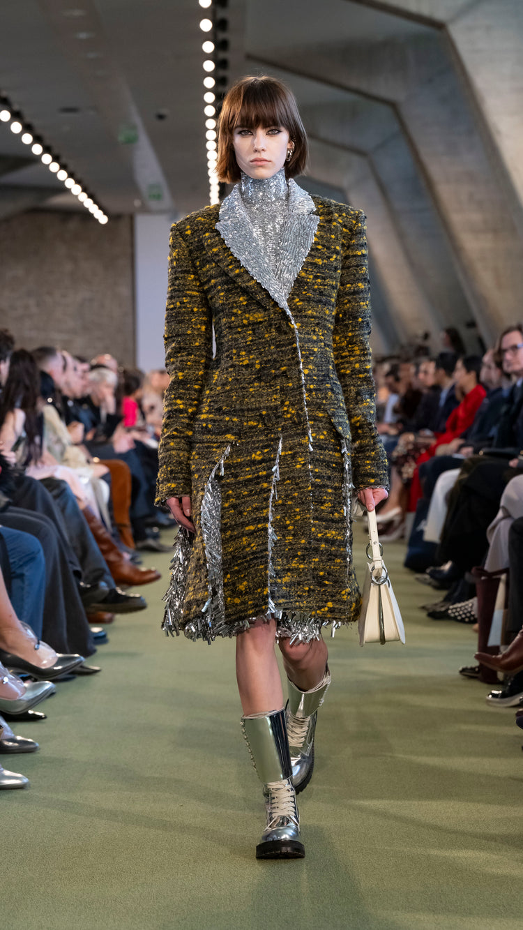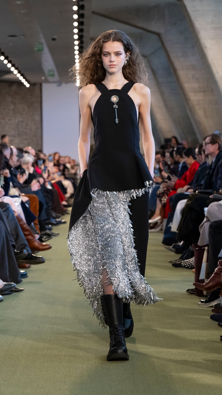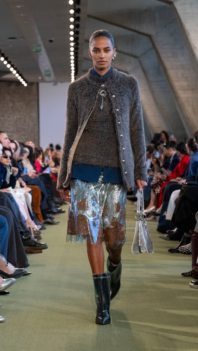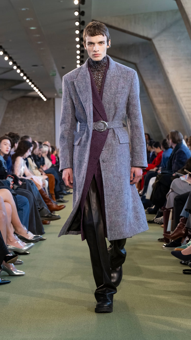 La collection Automne-Hiver 25 nous invite à tout garder près de soi — notre histoire, nos trésors, notre force — pour mieux les lâcher au moment opportun. En traduisant cet élan à travers des associations de matières, de formes et de couleurs, Julien Dossena installe un dialogue constant entre précieuse protection et liberté.