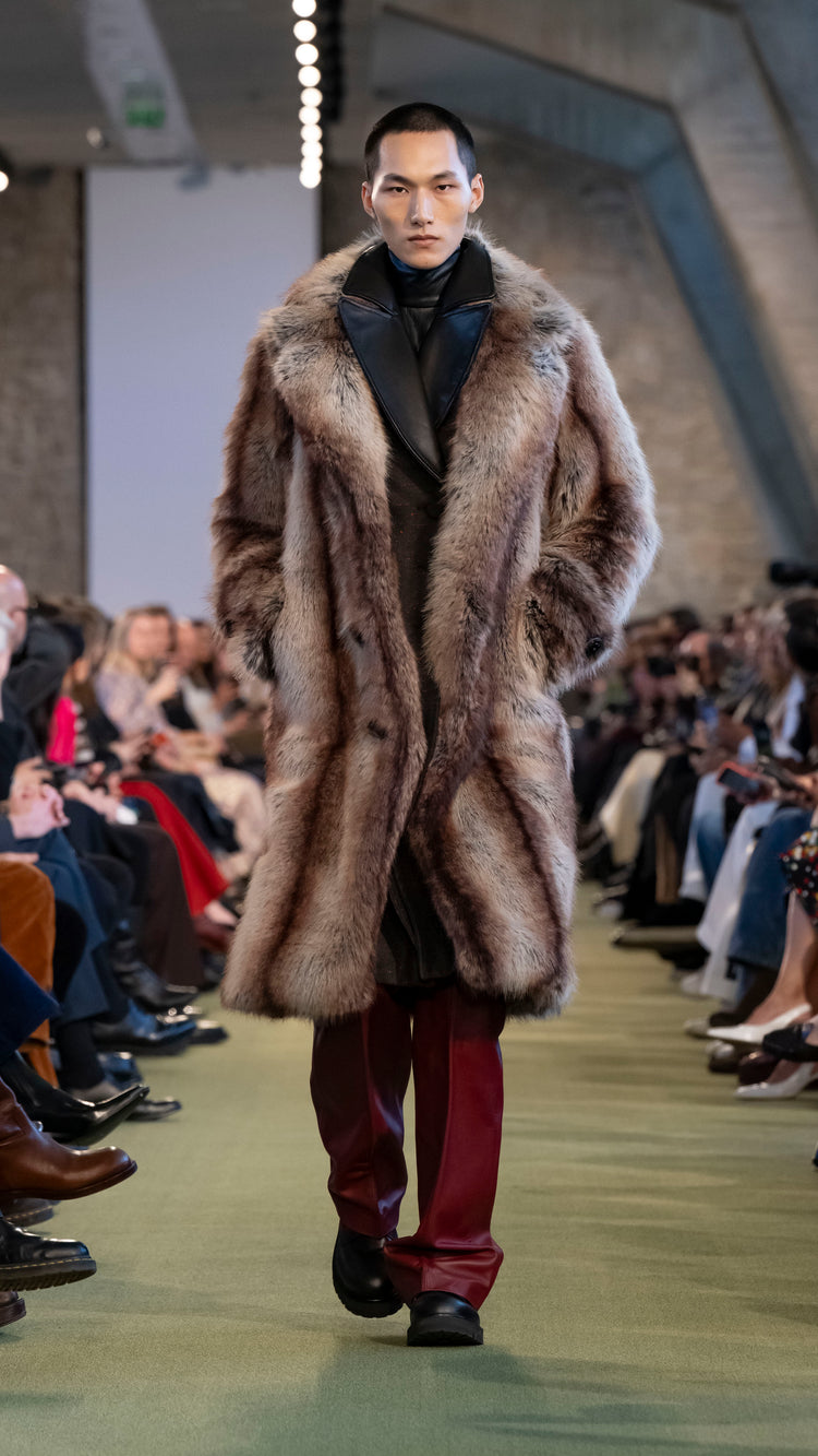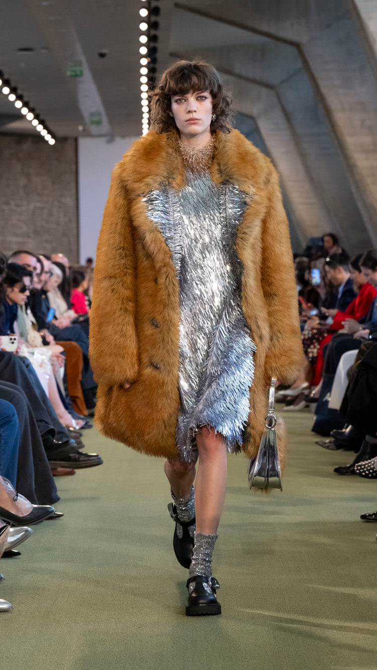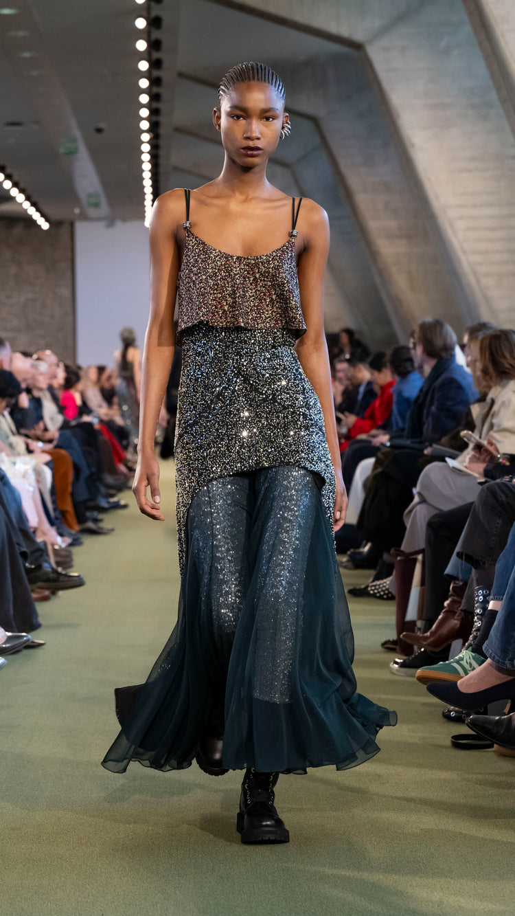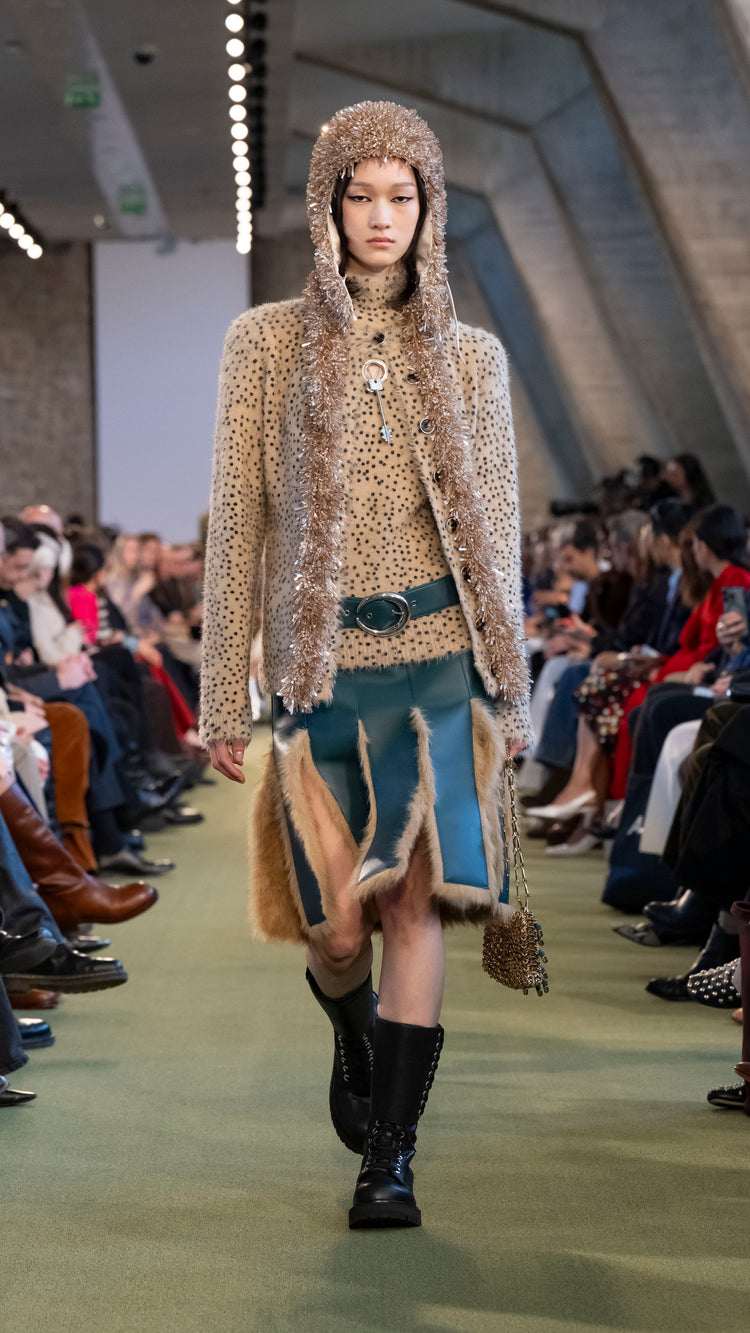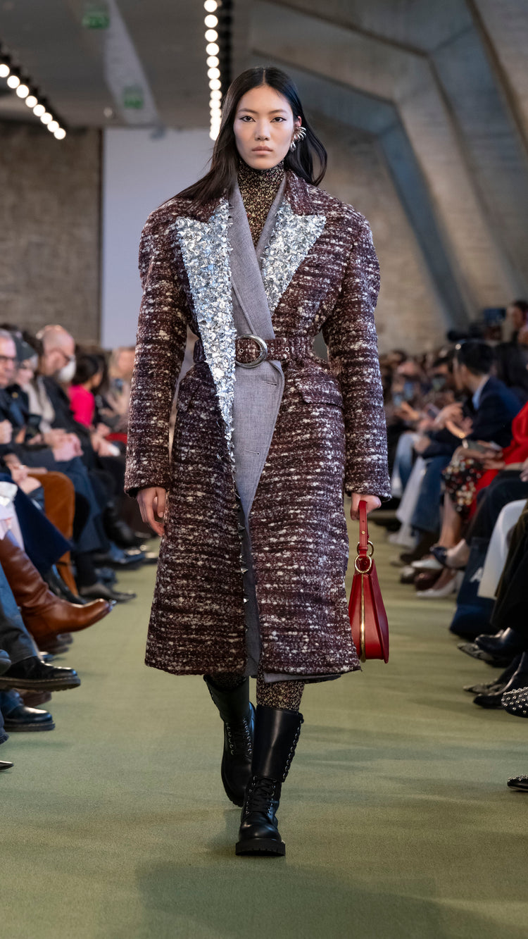 La collection Automne-Hiver 25 nous invite à tout garder près de soi — notre histoire, nos trésors, notre force — pour mieux les lâcher au moment opportun. En traduisant cet élan à travers des associations de matières, de formes et de couleurs, Julien Dossena installe un dialogue constant entre précieuse protection et liberté.