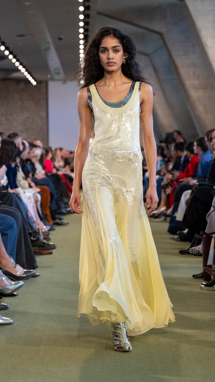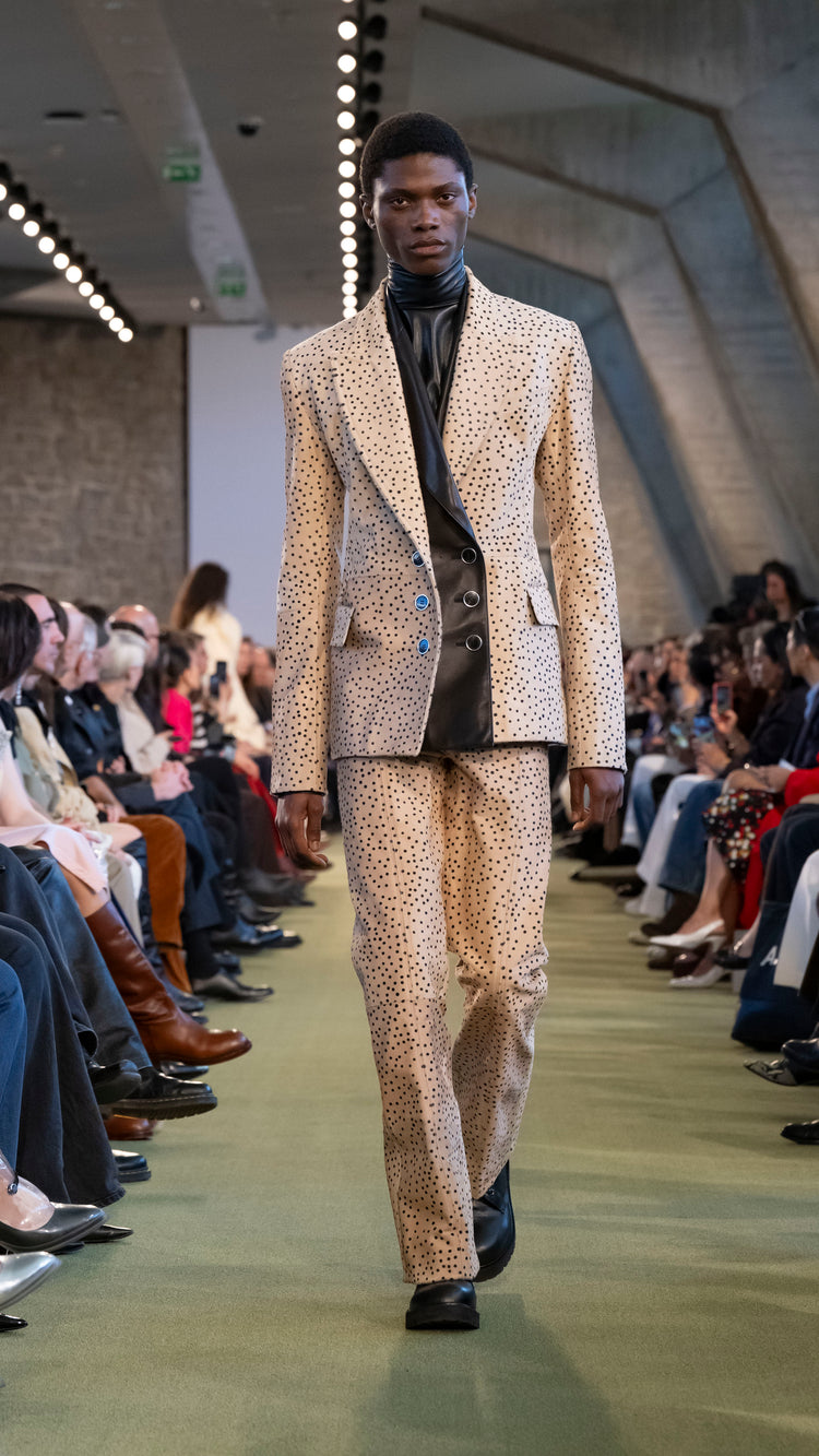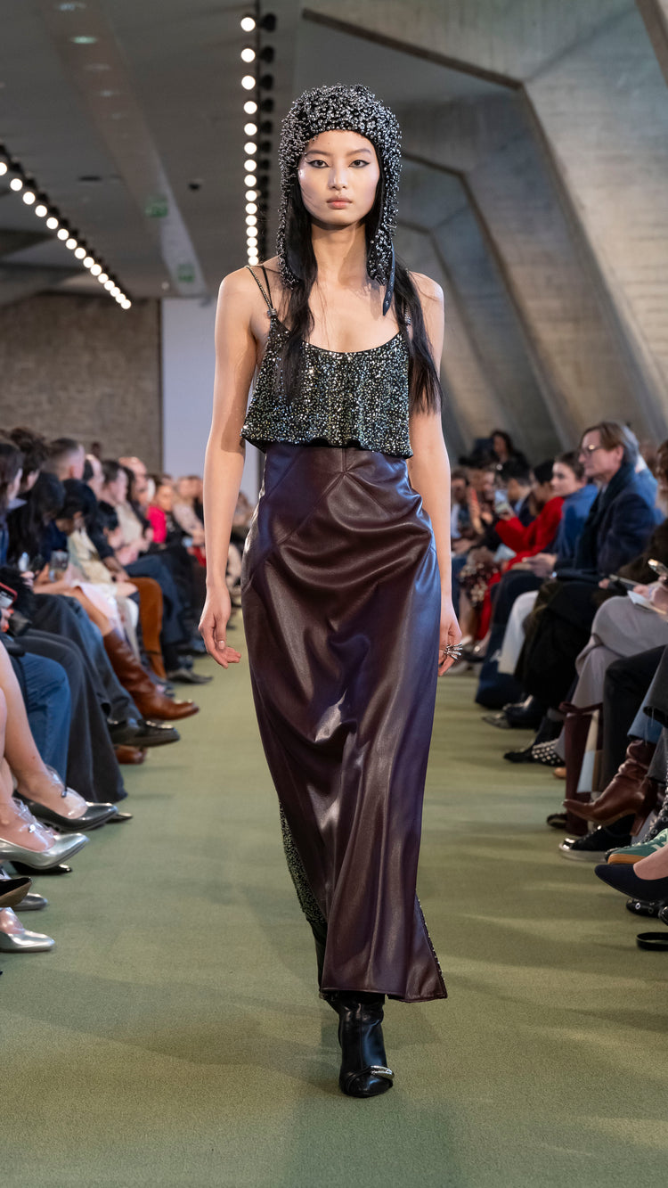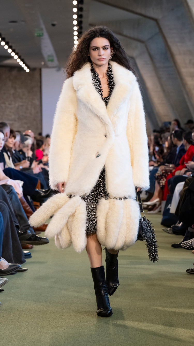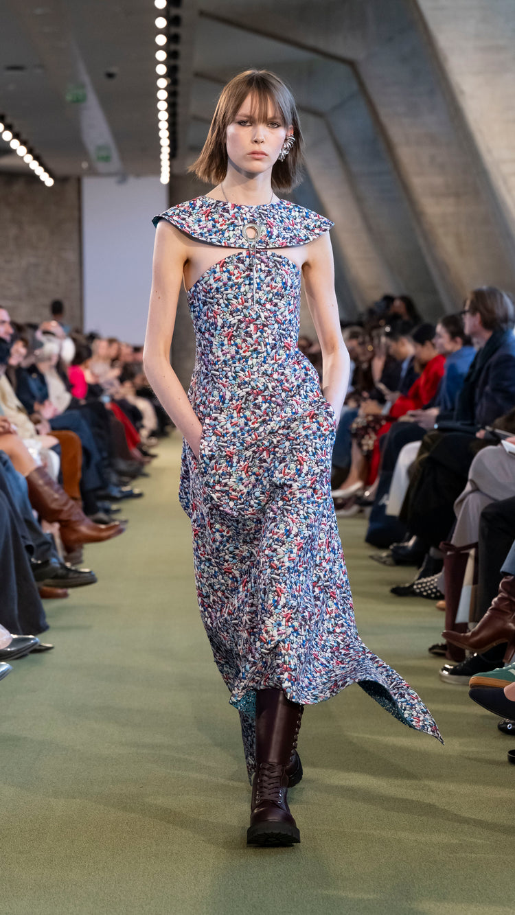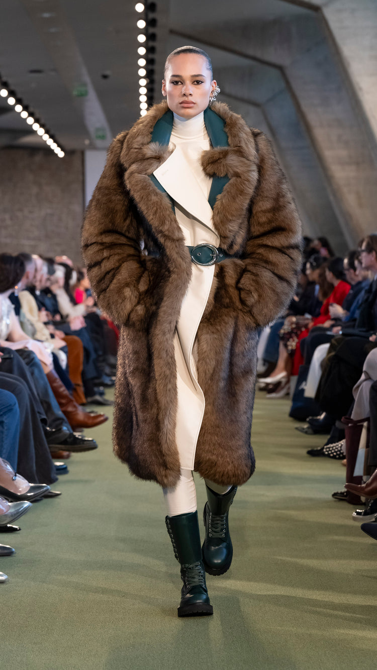 La collection Automne-Hiver 25 nous invite à tout garder près de soi — notre histoire, nos trésors, notre force — pour mieux les lâcher au moment opportun. En traduisant cet élan à travers des associations de matières, de formes et de couleurs, Julien Dossena installe un dialogue constant entre précieuse protection et liberté.