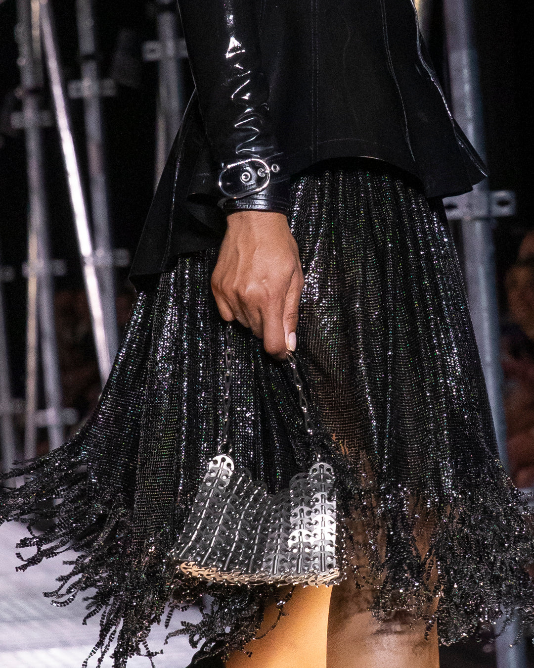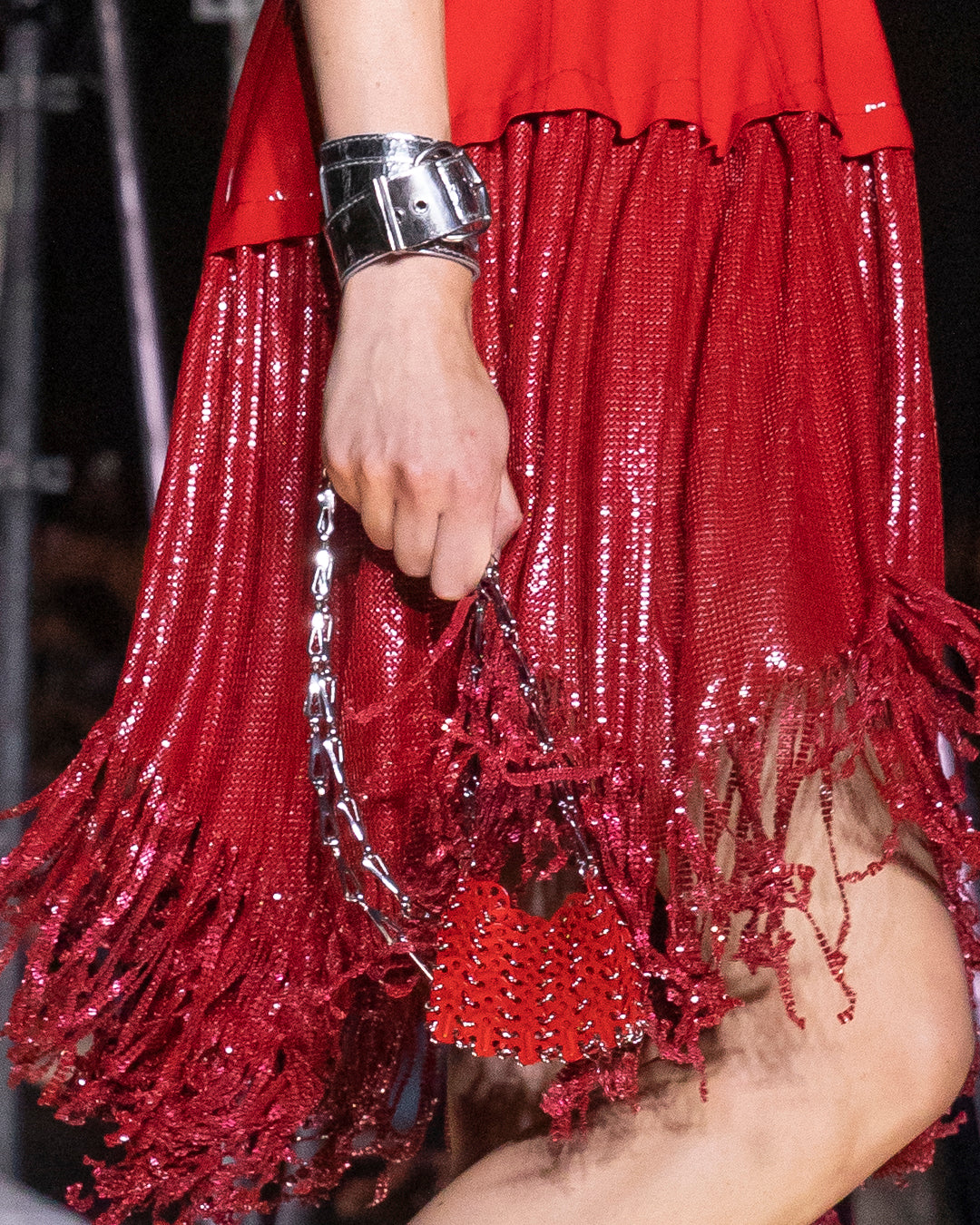 Depuis les origines mêmes de Rabanne, une obsession pour la matérialité, les textures radicales, les silhouettes non organiques s’est toujours manifestée. Chaînes d’argent et imprimés grunge. Couleurs vibrantes et dentelle sensuelle. Électrisez vos looks avec les pièces les plus punk de la collection Printemps-Été 23 de Julien Dossena.