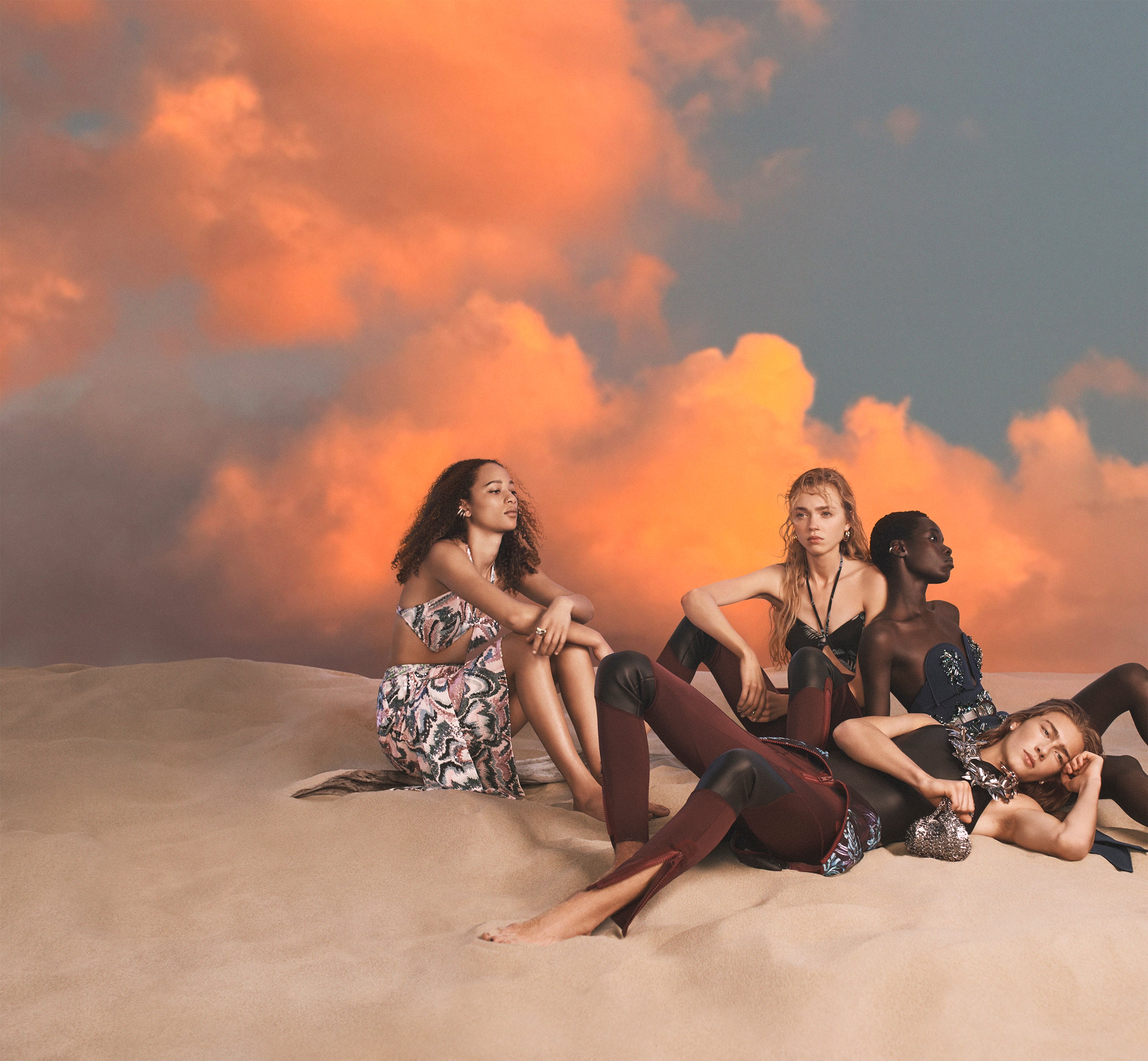 The campaign translates the tensions and contrasts within the collection into an imagined space poised between idyll and unease. Echoing the atomic undercurrents of the 1950s — a decade balanced between radiant optimism and quiet anxiety — glamour and disruption coexist in a fragile equilibrium.
