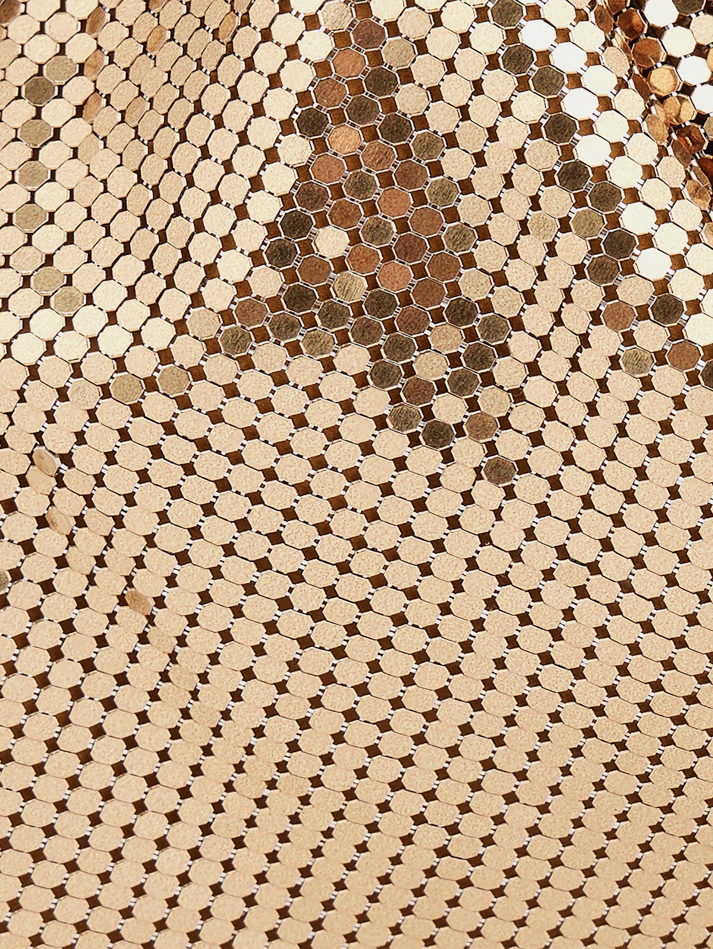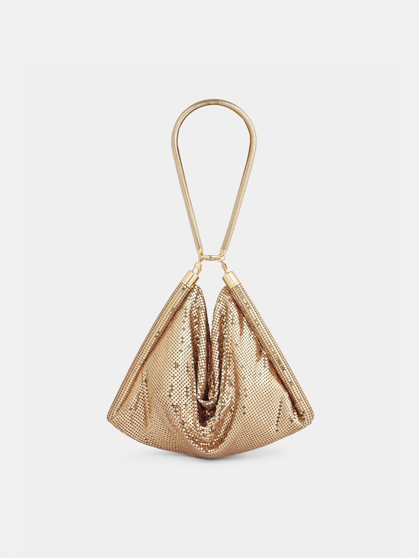 The gold aluminium bag made of mesh, an iconic material of our Maison, makes this bag a unique, elegant and outstanding item. The metallic gold effect gives the model a refined silhouette and vintage style.