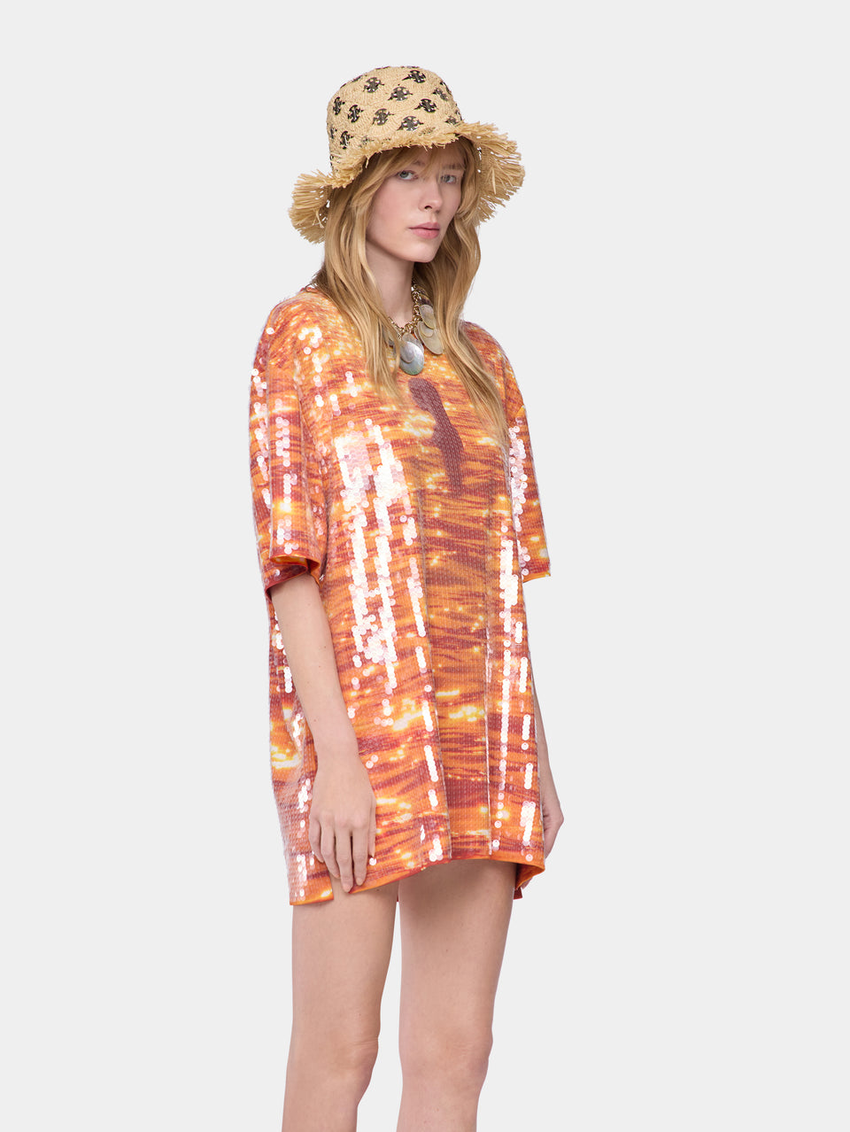 T-shirt mini dress in cotton embellished with sequins.