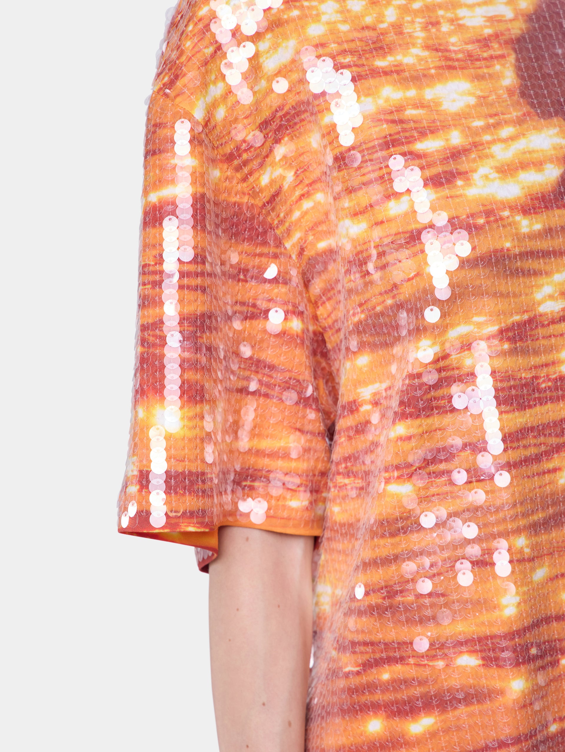 - Embellished transparent sequins.