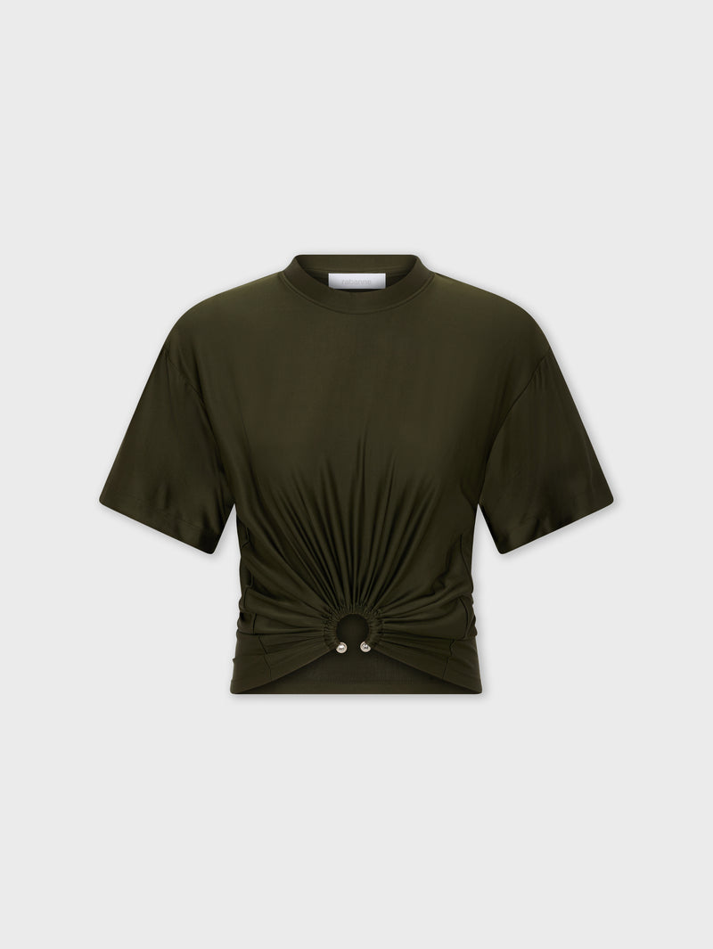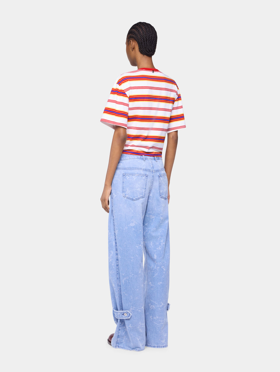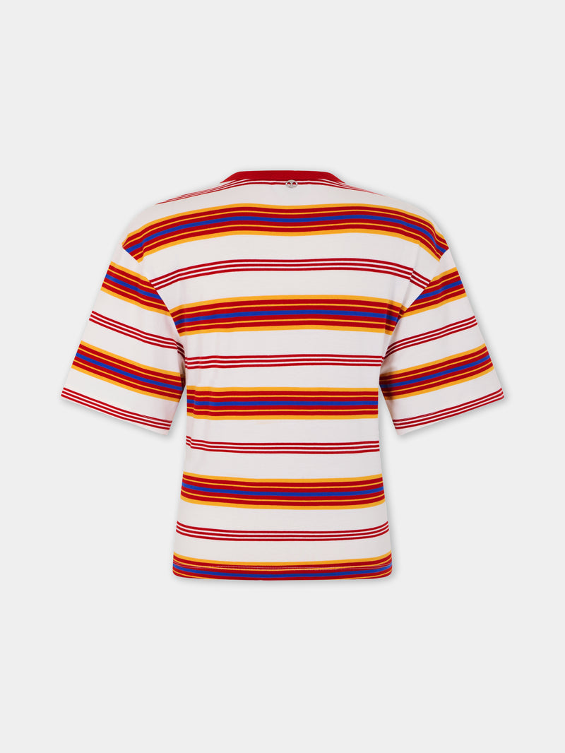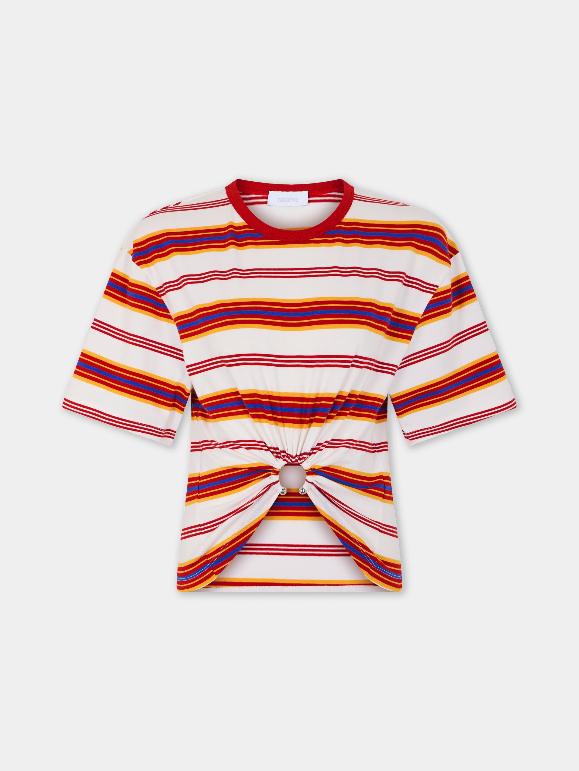 Short-sleeved cropped t-shirt with stripes and piercing detail in cotton.