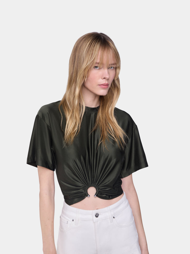Short-sleeved cropped t-shirt in jersey with piercing detail.