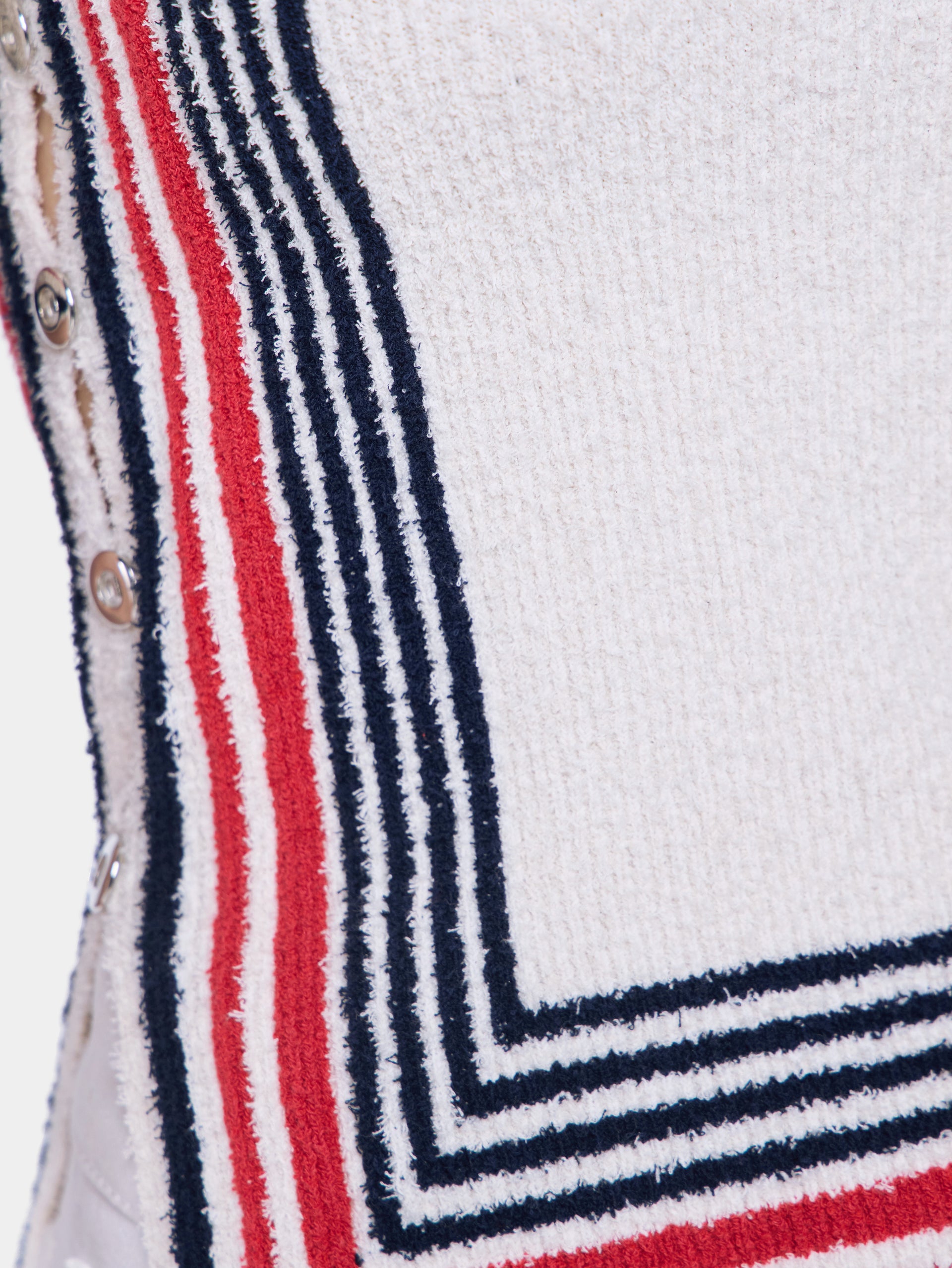 Fitted short sleeves top in ecru terry jersey, with red and navy stripe details.